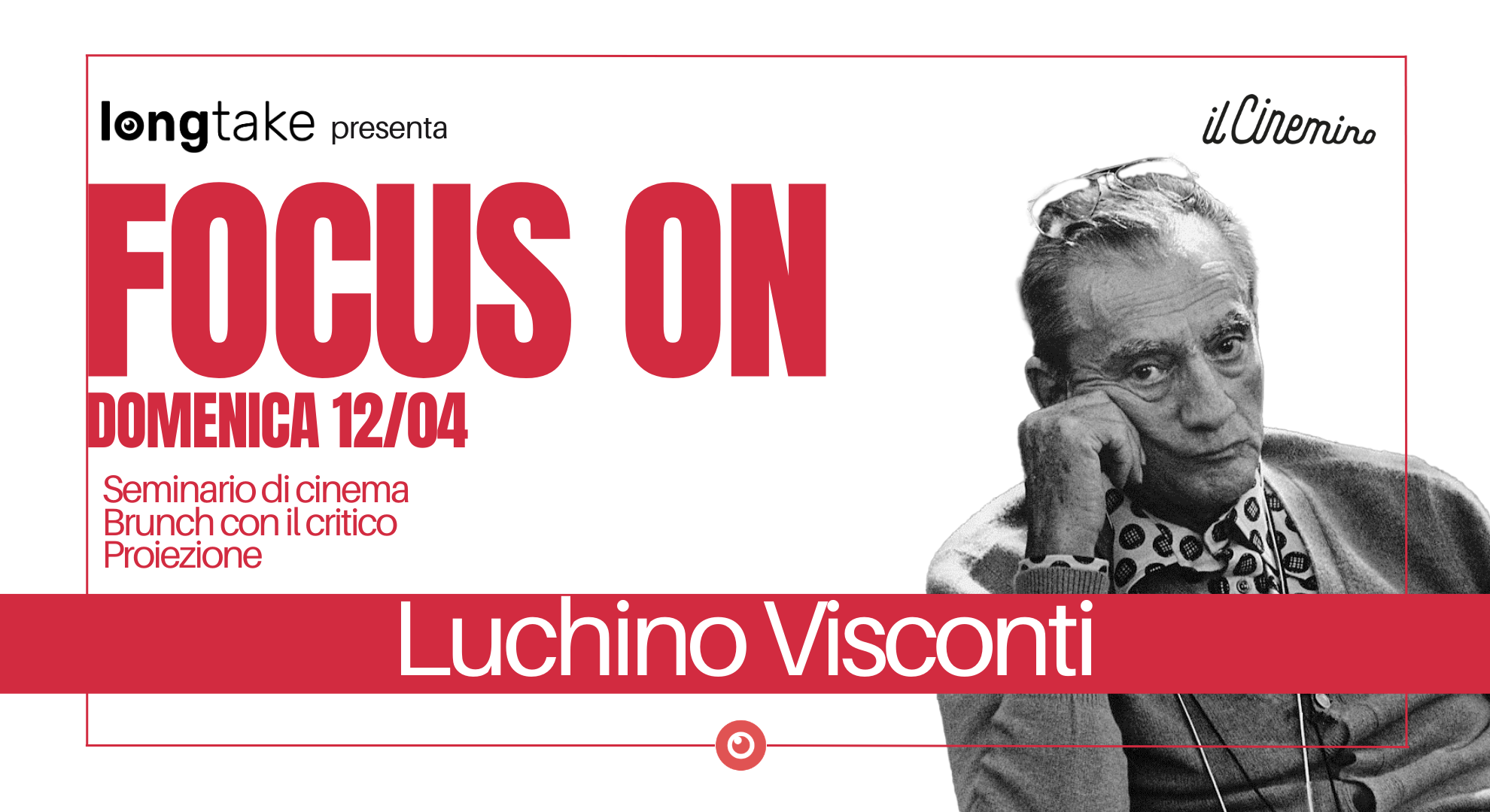Vi aspettiamo quindi per un’intera giornata, in programma domenica 12 aprile, dedicata a Luchino Visconti e divisa in tre appuntamenti: la mattina, dalle 10 alle 13, un seminario dedicato al cinema del regista, in cui verranno analizzate le sue pellicole attraverso la visione di sequenze fondamentali, arricchendo il seminario con interpretazioni relative a una delle filmografie più ricche e studiate del cinema mondiale.