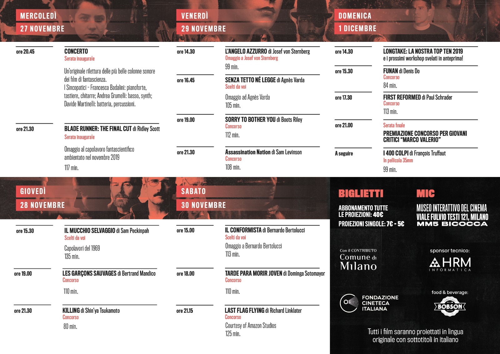 Tutti i film sono stati proiettati in versione originale con sottotitoli in italiano.