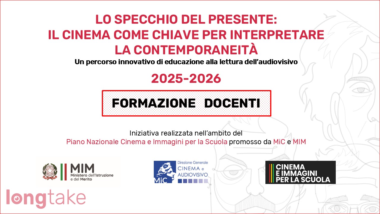 Il progetto, gestito da longtake, propone iniziative gratuite di formazione dedicate ai docenti di scuole di qualsiasi ordine e grado, come opportunità distintiva per approfondire il ruolo del cinema come strumento educativo